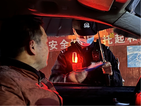 圖為(wei) 林芝達國橋邊境檢查站民警元宵節當晚在執勤點檢查車輛。 薑凱峰 攝
