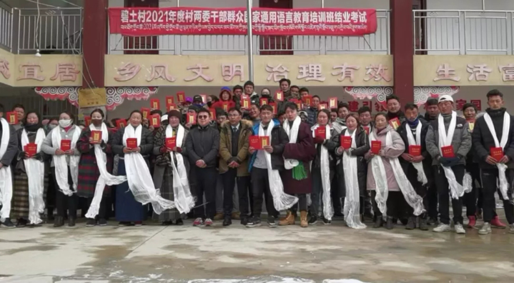 打造“領頭雁”,輻射帶動群眾(zhong) 共同進步。“歲歲鬧元宵,轟天鑼鼓敲”,進一步讓“學習(xi) ”之風在基層助力“好學”之苗生根發芽,工作隊在元宵節開展“2021年度國家通用語言教育培訓結業(ye) 典禮”,從(cong) 全村116名參訓人員中評選出“學習(xi) 之星”1名,“進步之星”2名進行表揚表彰,樹立學習(xi) 榜樣,激勵對標對表,努力學習(xi) 國家通用語言文字,有利於(yu) 促進各民族交往交流交融。