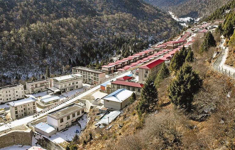 驅車沿219國道駛進縣城時,公路旁一排排整齊坐落的嶄新藏式樓房引人注目。樓房窗明幾淨,外牆紅白磚瓦相襯,陽光灑在房屋窗戶上射出閃閃金光。