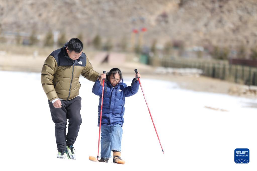 2月19日,家長帶著孩子練習(xi) 滑雪。新華社記者 薑帆 攝