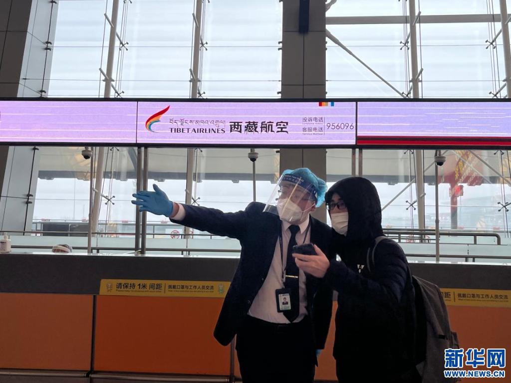 1月27日,西藏航空首家複航西安至拉薩航班。為(wei) 更好滿足返藏需求,西藏航空在線上提供更優(you) 惠、更方便的購票方式,線下增派地麵引導人員並配備雙語工作人員為(wei) 部分語言溝通不暢、航空知識匱乏的藏族旅客提供貼心服務,協助操作防疫信息申報、提示個(ge) 人防護手部消毒、提醒檢查核酸報告行程健康碼、告知目的地機場防疫信息。