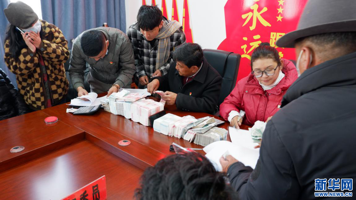 2月23日,維巴村維巴組、曲色組股份經濟合作社分紅現場。新華網 殷小燕攝