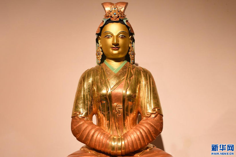 圖為(wei) 白納鍛銅技藝代表性傳(chuan) 承人羅布占堆的手工作品《文成公主》(2月25日攝)。新華網 旦增努布 攝
