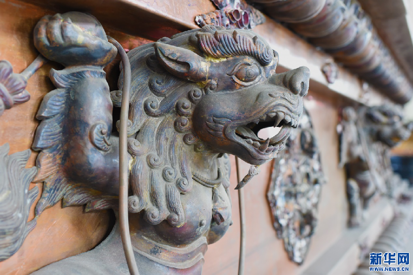 圖為(wei) 白納鍛銅技藝代表性傳(chuan) 承人羅布占堆的手工作品局部(2月25日攝)。新華網 旦增努布 攝