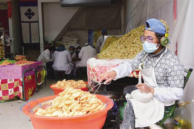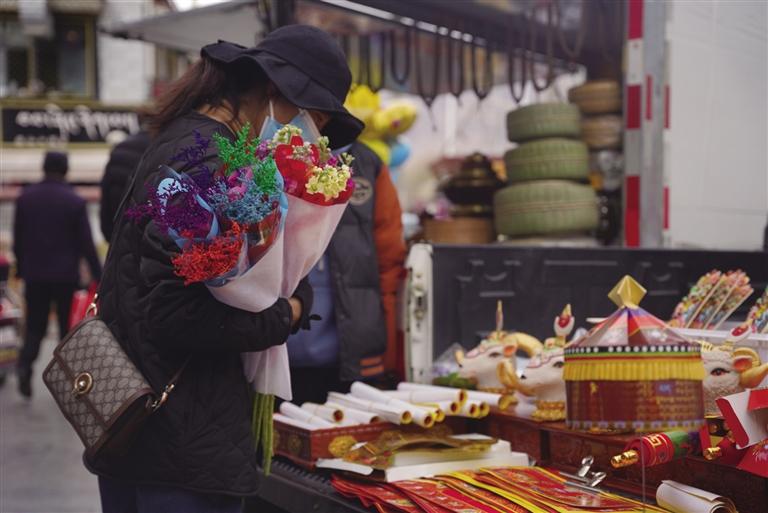 千門萬(wan) 戶曈曈日,總把新桃換舊符。隨著各民族交往交流交融,藏文對聯也逐漸成為(wei) 藏曆新年年貨市場中不可缺少的“成員”,寄托了人們(men) 對來年美好生活的殷切期盼。走進衝(chong) 賽康市場,記者看到很多攤位都擺放著各式各樣紅色藏式對聯,內(nei) 容主要蘊含平安、健康、長壽等吉祥的寓意,不時還有市民前來詢價(jia) 選購。此外,每年藏曆新年前,不少書(shu) 法家還會(hui) 將滿載祝福的對聯寫(xie) 好後送給市民,把濃濃的年味和對藏曆新年的祝福送到大家手中。