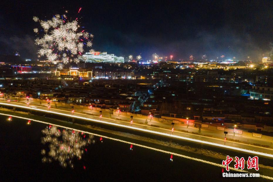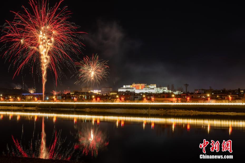 3月1日是藏曆12月29日,按照藏族傳(chuan) 統習(xi) 俗,當天晚上藏族家家戶戶吃“古突”(一種麵食,包有不同寓意的各種餡料),迎接藏曆新年。圖為(wei) “古突”之夜,西藏拉薩布達拉宮周邊煙花璀璨。中新社記者 江飛波 攝