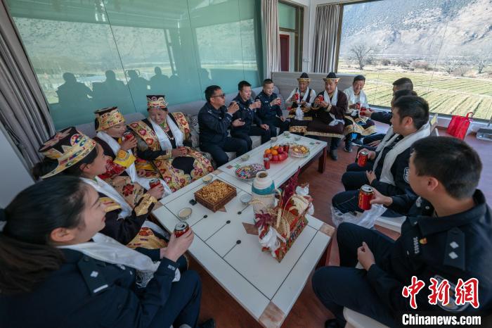 圖為(wei) 轄區民眾(zhong) 在林芝市米林縣派邊境派出所內(nei) 和民警一起過新年。江才雲(yun) 旦 攝