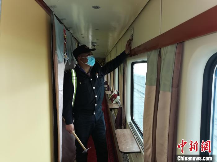 資料圖為(wei) 嘎瑪達吉對列車服務設施進行檢查。青藏集團公司供圖