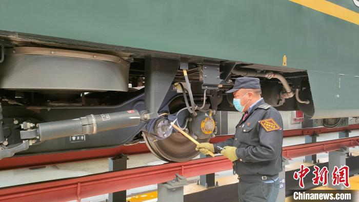 資料圖為(wei) 嘎瑪達吉利用庫停時間對列車走形部進行檢查。青藏集團公司供圖