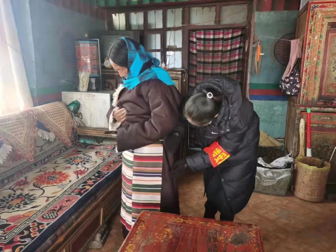 嘉黎縣林堤鄉(xiang) 新時代文明實踐所組織黨(dang) 員誌願者開展“學習(xi) 雷鋒紀念日”活動,慰問困難戶和監測戶,情暖夕陽,關(guan) 愛空巢老人。