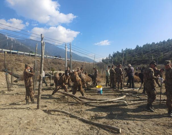 為(wei) 大力推進生態環境建設,進一步加強民族團結工作,增進“軍(jun) 愛民、民擁軍(jun) ,軍(jun) 民團結一家親(qin) ”的軍(jun) 民感情。3月12日,米林縣委統戰部派駐羌納鄉(xiang) 崗嘎村工作隊、崗嘎村“兩(liang) 委”班子聯合77215部隊,組織黨(dang) 員群眾(zhong) 開展“軍(jun) 地攜手植樹造林 共創綠色和諧家園”主題植樹活動。