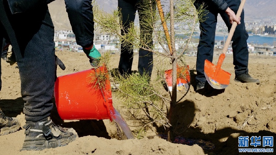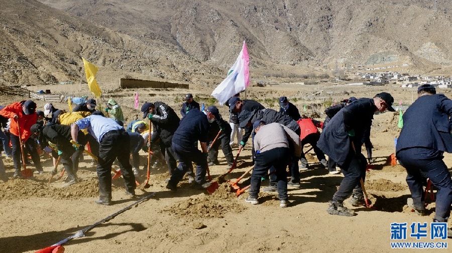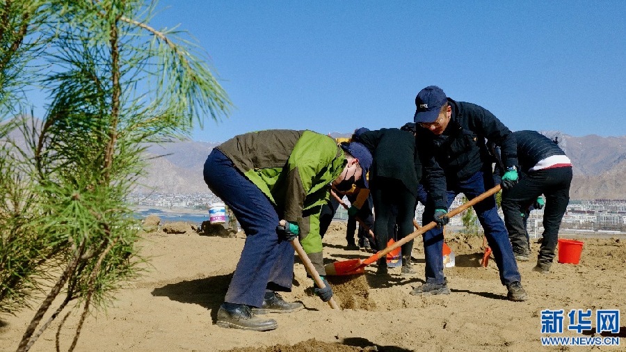 3月15日,西藏銀行員工正在進行植樹比賽。新華網 柑丹鴦琦 攝