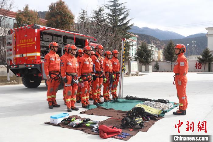 圖為(wei) 消防指戰員正在進行索降裝備講解。 林芝市森林消防支隊 攝