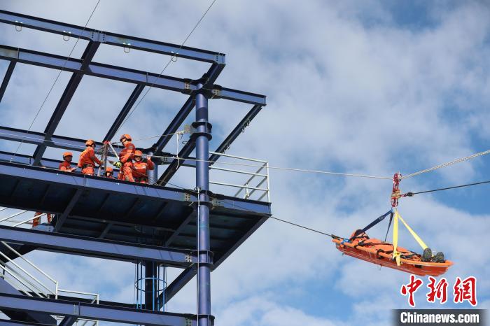 圖為(wei) 消防指戰員利用橫渡係統轉運傷(shang) 員。 林芝市森林消防支隊 攝