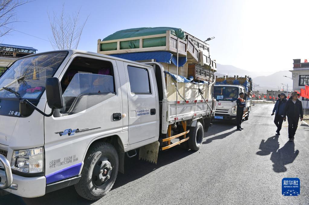 次旺堅參(左)將家具搬進位於(yu) 湘河水庫移民新村的新家(3月27日攝)。新華社記者 張汝鋒 攝