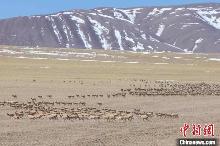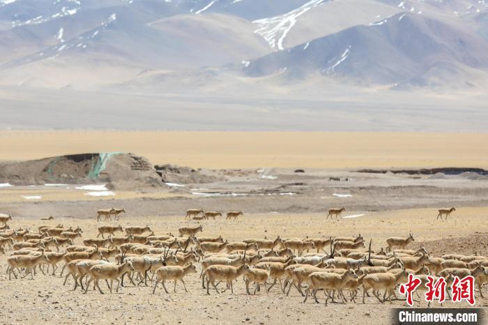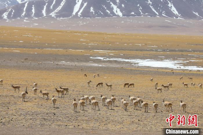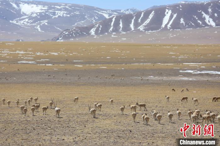 圖為(wei) 3月27日,西藏改則縣先遣鄉(xiang) 附近的藏羚羊種群。邊巴 攝