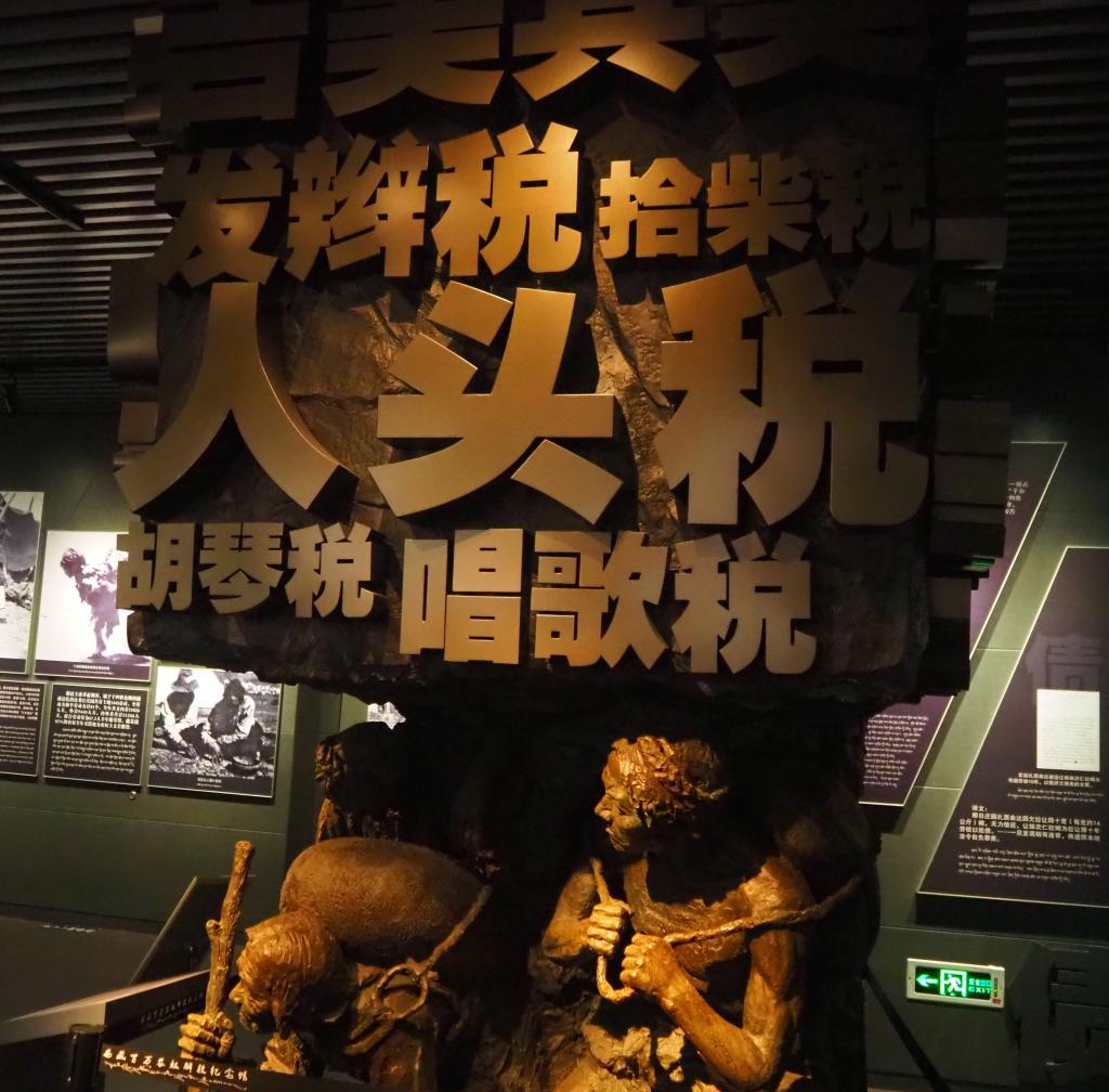 這座占地2700平方米的展館裏,陳列著反映舊西藏苛捐雜稅的雕像,也陳列著舊時農(nong) 奴被囚禁虐待的慘狀。