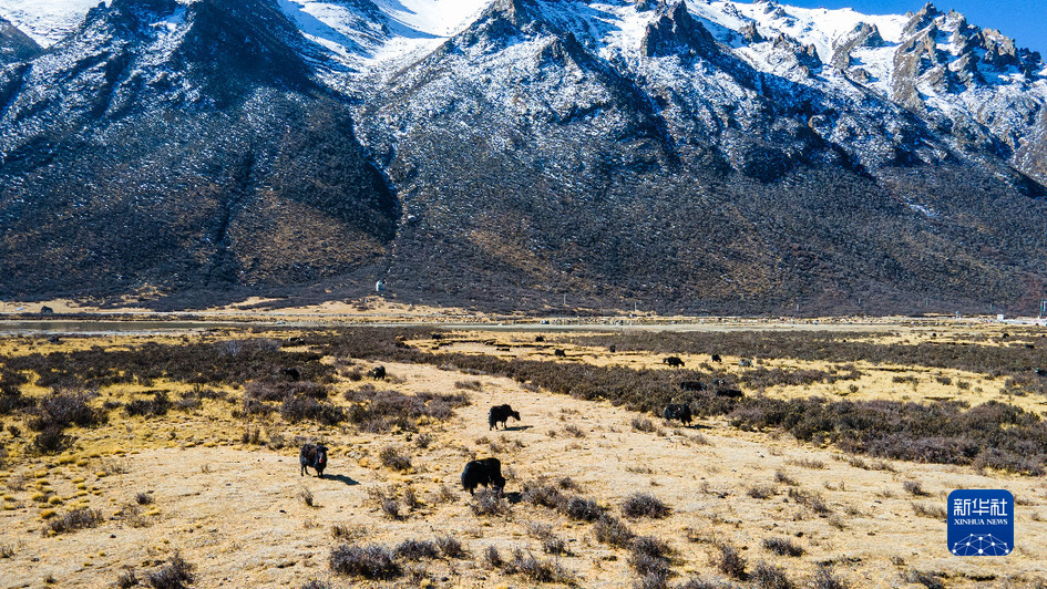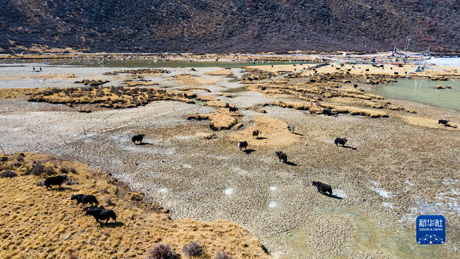 西藏娘亞(ya) 犛牛養(yang) 殖產(chan) 業(ye) 發展有限責任公司的犛牛在牧場上活動(3月30日攝,無人機照片)。新華社記者 周荻瀟 攝