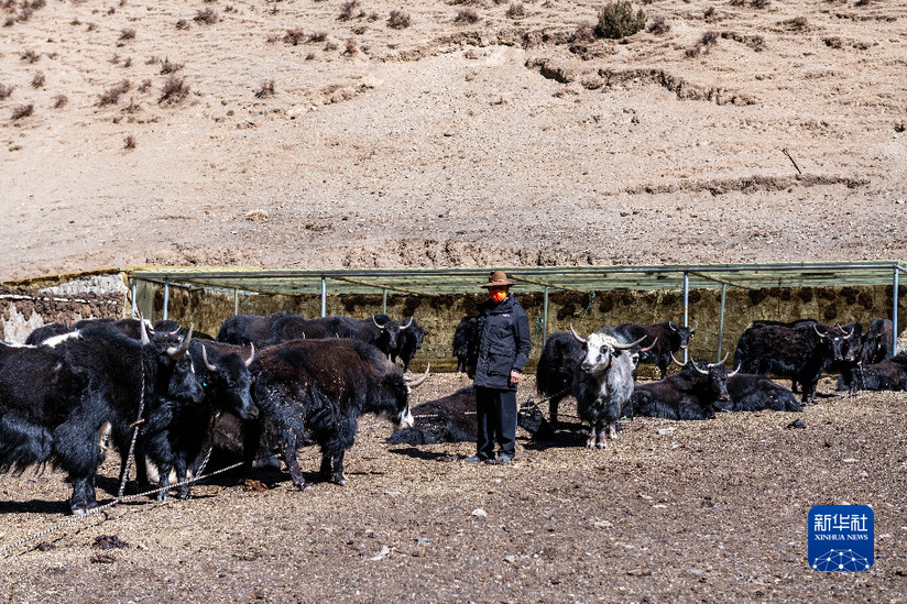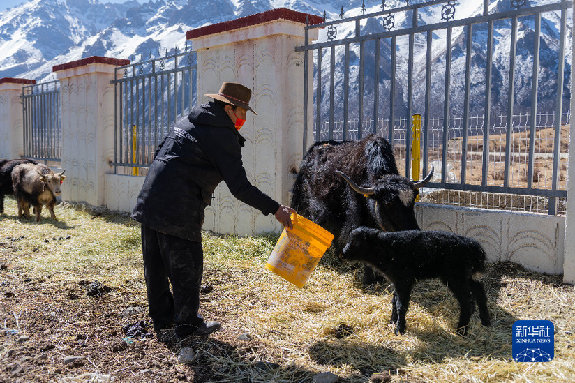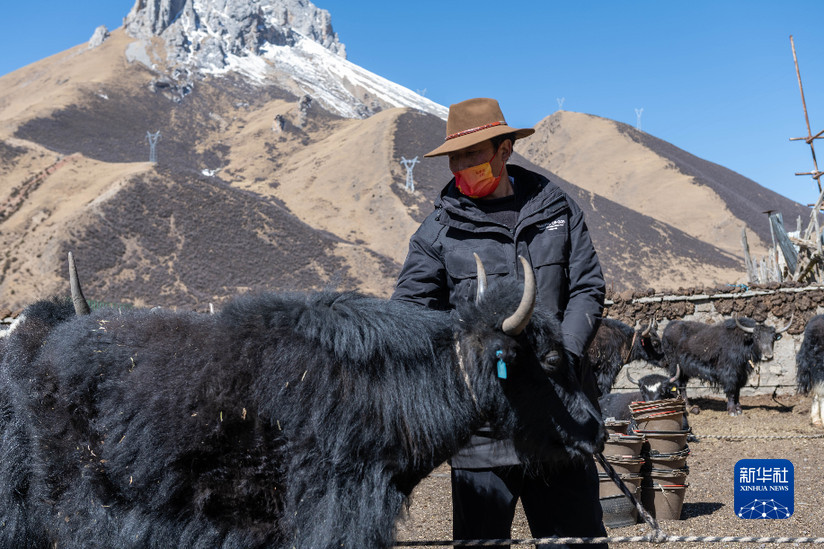 貢培在西藏娘亞(ya) 犛牛養(yang) 殖產(chan) 業(ye) 發展有限責任公司的養(yang) 殖場工作(3月30日攝)。新華社記者 周荻瀟 攝