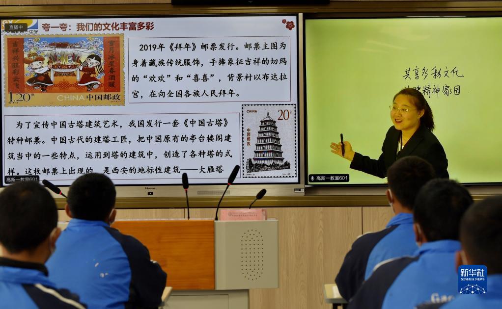 4月8日,西安高新第一中學老師通過“雲(yun) 校”為(wei) 兩(liang) 校學生授課。新華社記者 張汝鋒 攝