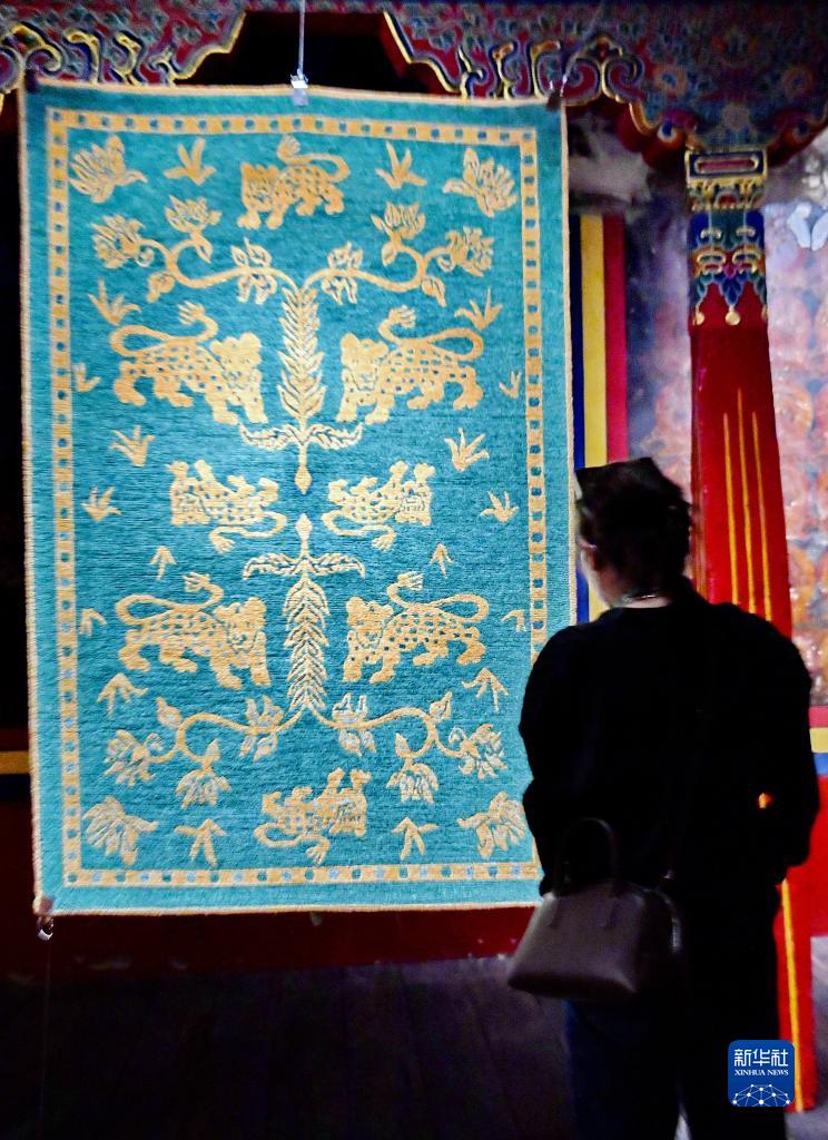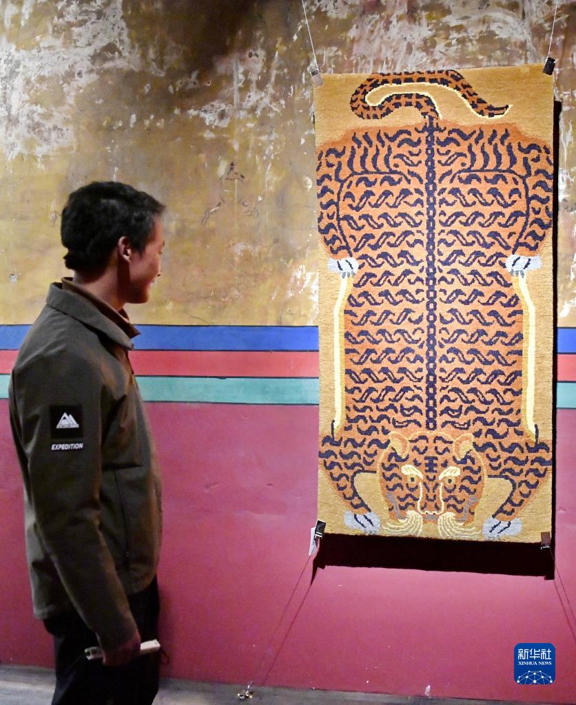 當日,名為(wei) “智慧和無畏”的“虎毯”展覽在拉薩吉本崗藝術中心展出。西藏的非遺工作者根據古代藏毯藏品重新挖掘,整理了以“虎”為(wei) 主題的圖案,設計製作了本次展覽作品。本次展覽展出20餘(yu) 件各具特色的藏毯藝術作品,展覽將持續到5月初。
