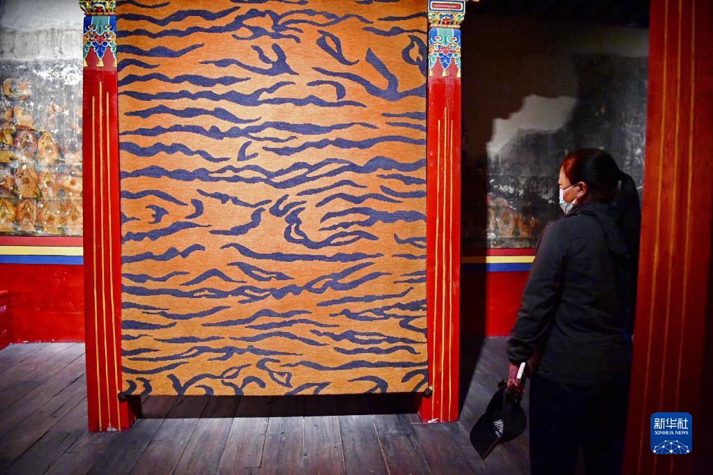 4月9日,觀眾(zhong) 在展廳內(nei) 欣賞“虎毯”。新華社記者 張汝鋒 攝