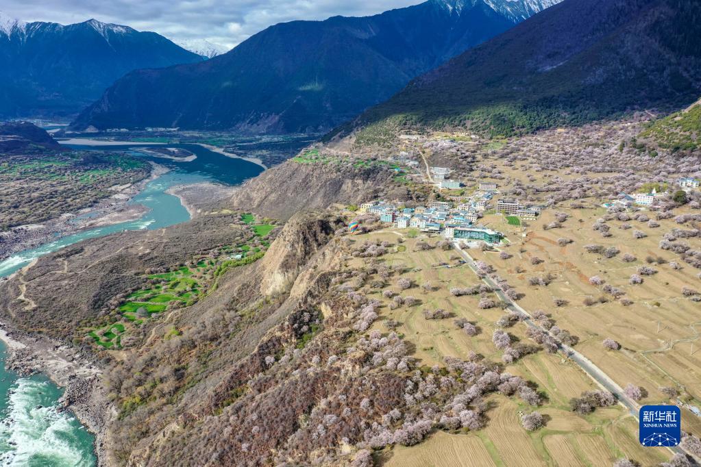 這是無人機拍攝的索鬆村,村子腳下是蜿蜒的雅魯藏布江(4月13日攝)。新華社記者 孫非 攝