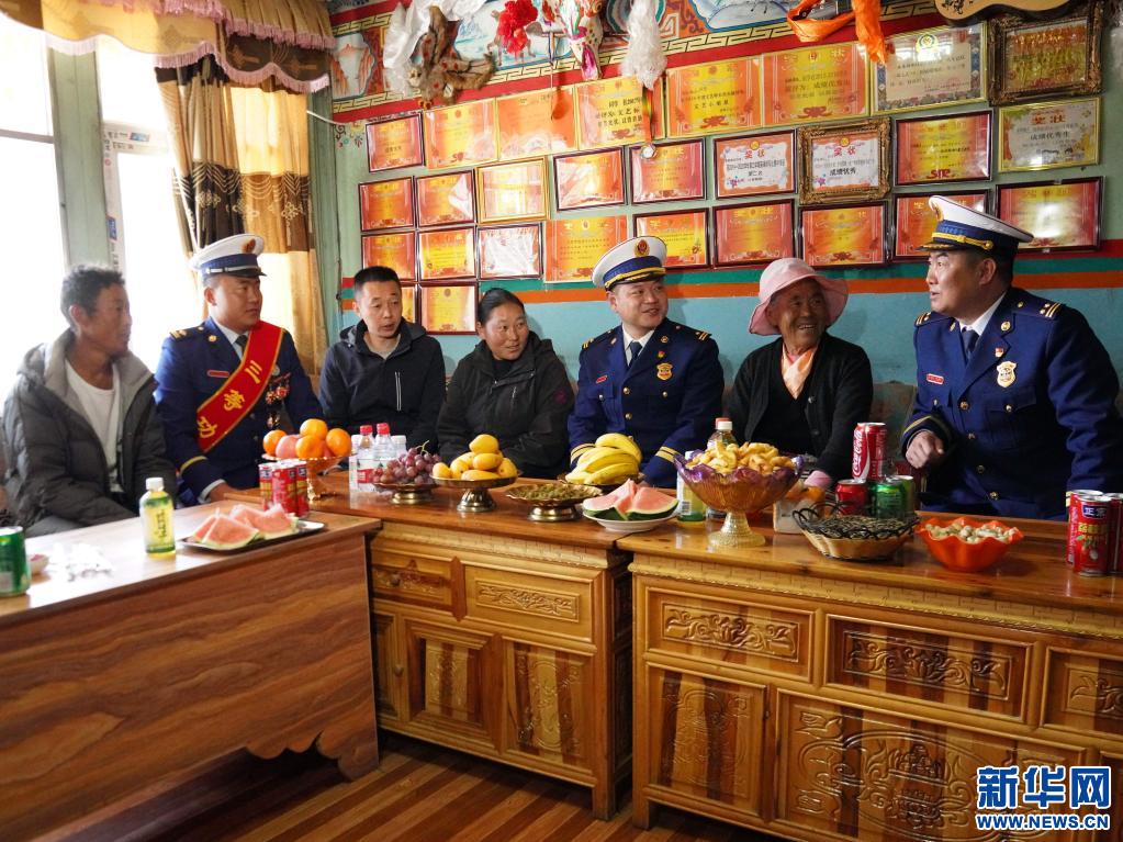 西藏林芝市森林消防支隊代表與(yu) 洛桑頓珠家屬交流談心(4月15日攝)。(李國燾攝 新華網發)