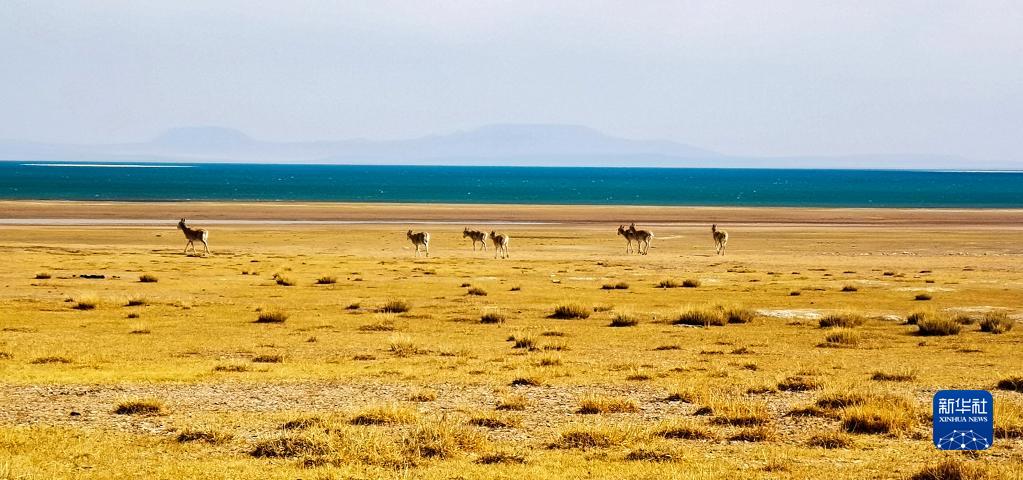 一群藏原羚在位於(yu) 西藏自治區那曲市的色林錯湖邊徜徉(2022年4月13日攝,手機照片)。新華社記者 沈虹冰 攝
