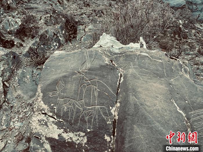 日喀則博物館副館長、日喀則石刻藝術博物館負責人格旺介紹,調查組在仁布縣邦亞(ya) 山穀進行石刻文物挖掘調研工作時,經從(cong) 村民處了解,在離卡若村5公裏遠的山穀一岩崖表麵發現了一組四隻鹿和一盤十六格圍棋組成的鑿刻岩畫。
