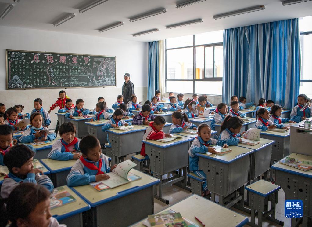 在森布日幸福家園九年一貫製學校的教室裏,學生們(men) 在上自習(xi) (資料圖)。新華社記者孫非攝
