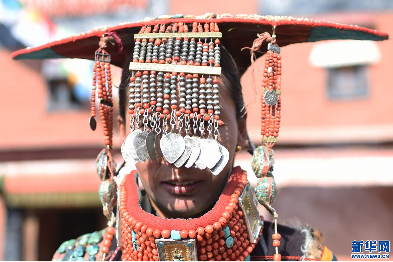 4月21日拍攝的身著普蘭(lan) 服飾的普蘭(lan) 縣科迦村村民。新華網 旦增努布攝