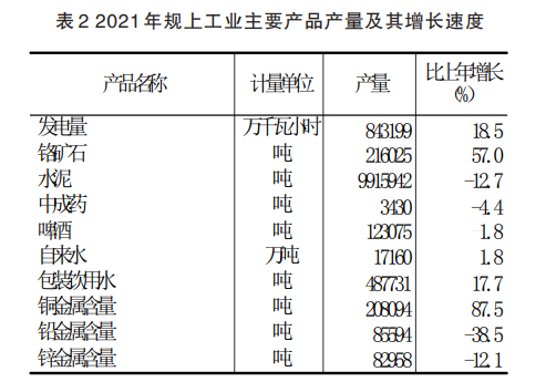 全年規模以上工業(ye) 中,黑色金屬礦采選業(ye) 增加值比上年增長57.5%,有色金屬礦采選業(ye) 增長36.4%,農(nong) 副食品加工業(ye) 增長9.0%,食品製造業(ye) 下降39.5%,酒、飲料和精製茶製造業(ye) 下降0.1%,醫藥製造業(ye) 增長17.9%,非金屬礦物製品業(ye) 下降8.8%,電力、熱力生產(chan) 和供應業(ye) 增長4.8%。