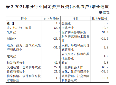 全年固定資產(chan) 投資總額比上年下降14.2%。按產(chan) 業(ye) 分,第一產(chan) 業(ye) 投資增長56.3%,第二產(chan) 業(ye) 投資下降29.7%,第三產(chan) 業(ye) 投資下降13.1%。按經濟類型分,國有經濟投資下降12.5%,集體(ti) 經濟投資增長21.0%,個(ge) 體(ti) 經濟投資下降78.2%,其他各種經濟類型投資增長53.6%。全年民間投資增長0.7%。