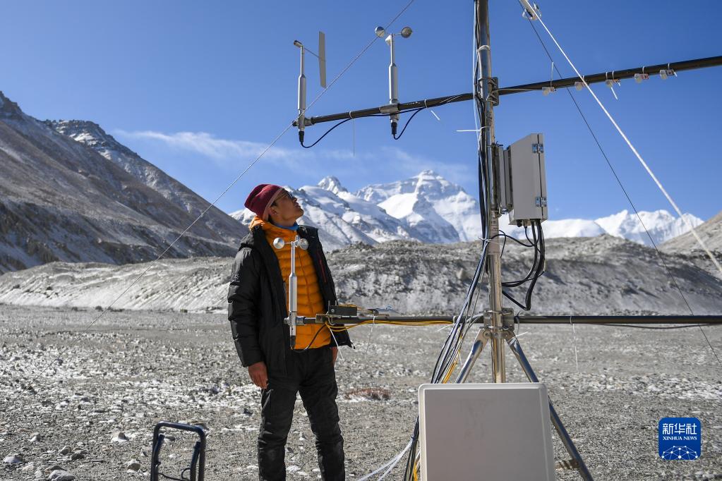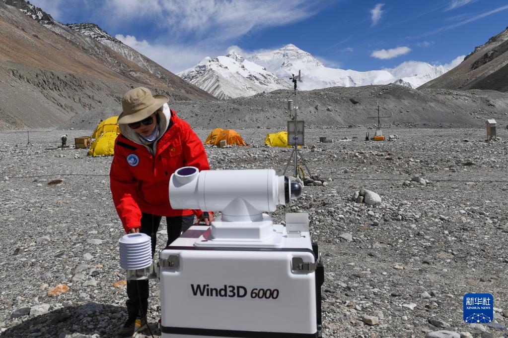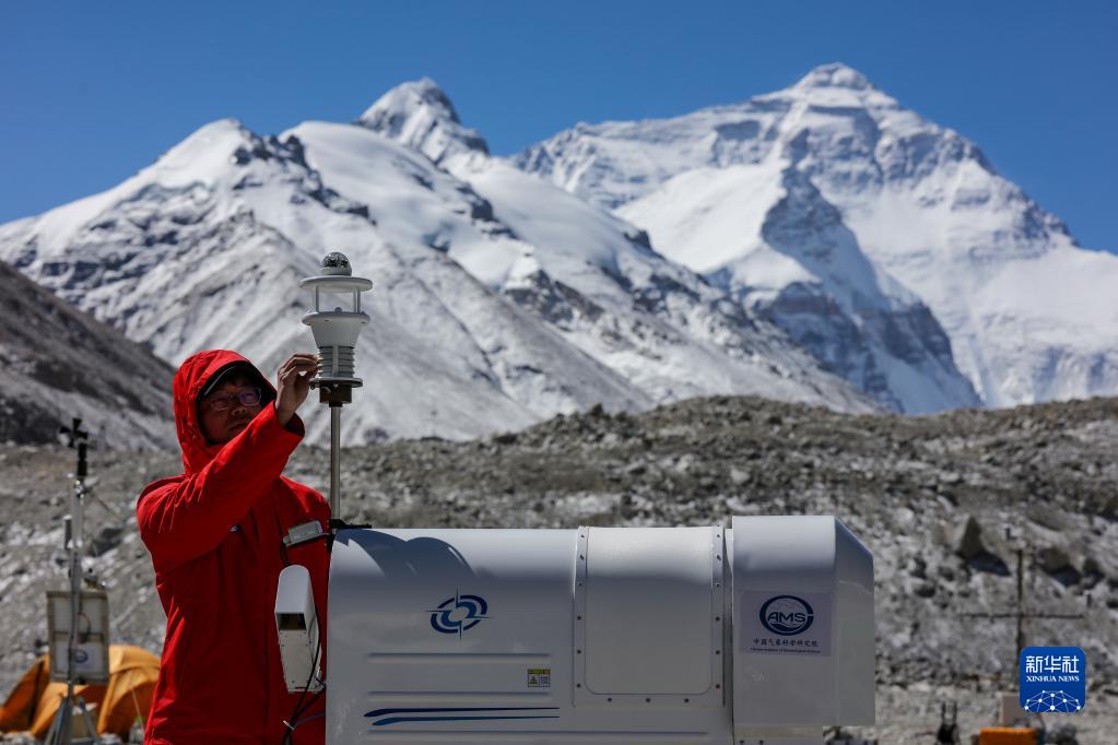 5月2日,在珠峰登山大本營,科研人員檢查測風雷達。新華社記者 薑帆 攝