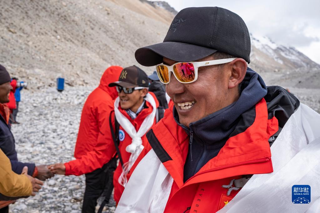 安全返回大本營的珠峰科考登頂工作小組副組長紮西平措,這是他第16次成功登頂珠峰(5月5日攝)。新華社記者 薑帆 攝