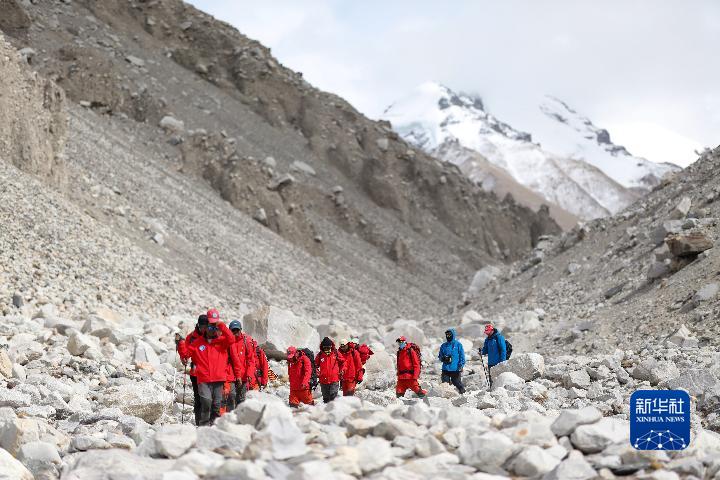科考隊員正在返回大本營(5月5日攝)。新華社記者 薑帆 攝