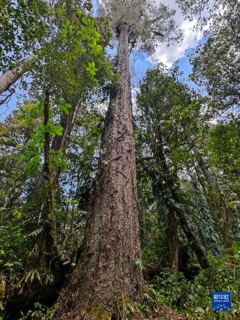 這是科研人員在西藏自治區墨脫縣背崩鄉(xiang) 格林村記錄到的高達76.8米的不丹鬆。(采訪對象供圖)