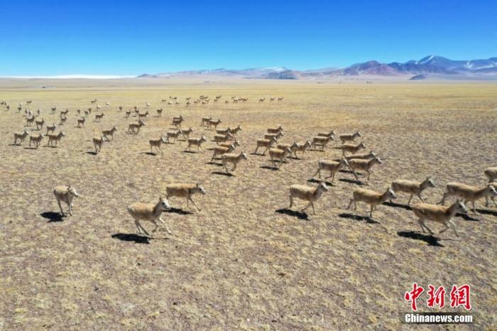 西藏阿裏現大規模藏羚羊聚集 生態保護顯成效