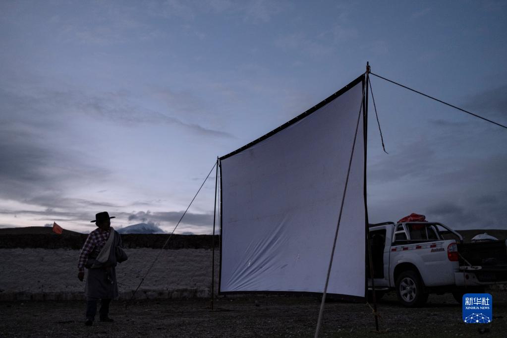 西藏當雄縣巴靈村的村民在看電影(5月20日攝)。新華社記者 孫非 攝