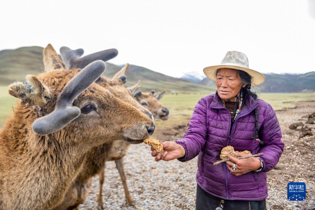 20世紀70年代,家住昌都市類烏(wu) 齊縣長毛嶺鄉(xiang) 協塘村的向秋拉姆發現並照顧了3隻離群的小馬鹿,從(cong) 此與(yu) 馬鹿結緣。40多年來,向秋拉姆悉心照料數百隻馬鹿。目前,她的兩(liang) 個(ge) 兒(er) 子延續著照顧馬鹿的使命。