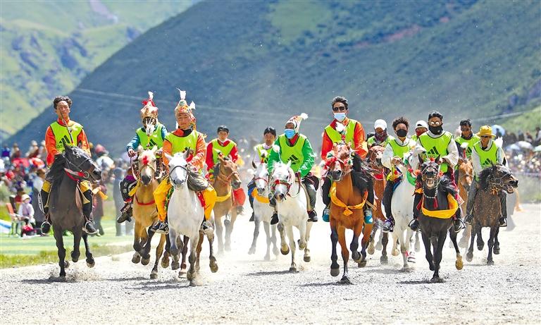 圖為(wei) 嘉黎群眾(zhong) 參加賽馬比賽。(圖片由嘉黎縣融媒體(ti) 提供)