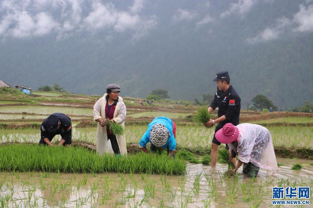 巴安通邊境派出所民警幫助僜人群眾(zhong) 插秧。