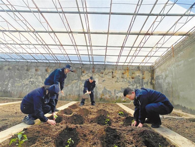 圖為(wei) 日喀則市康馬縣薩瑪達邊境派出所民警在陽光棚裏種菜。 記者 趙文慧 通訊員 黃偉(wei) 媛 攝
