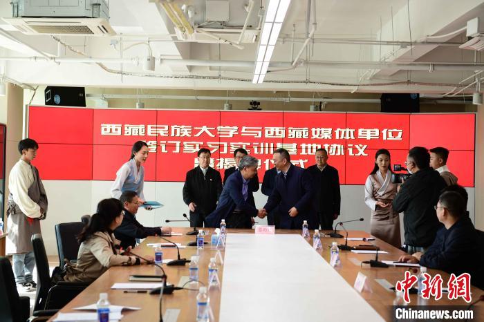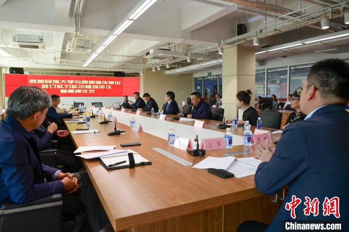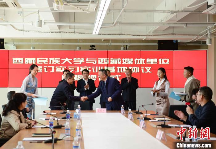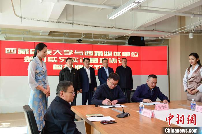 5月27日,西藏民族大學與(yu) 西藏日報社、西藏廣播電視台、人民網西藏頻道、中國新聞社西藏分社、新利平台西藏記者站等媒體(ti) 單位簽訂實習(xi) 實訓基地協議暨揭牌儀(yi) 式在西藏日報舉(ju) 行。