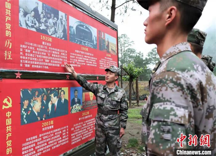 圖為(wei) 官兵介紹中國共產(chan) 黨(dang) 黨(dang) 史。 郝偉(wei) 龍 攝