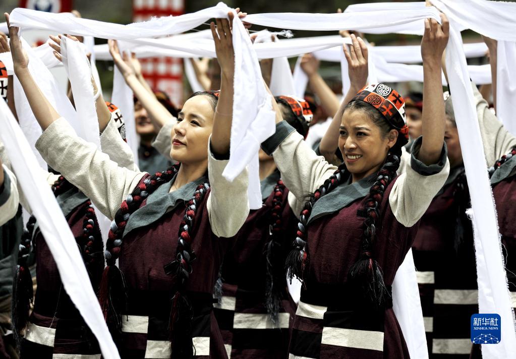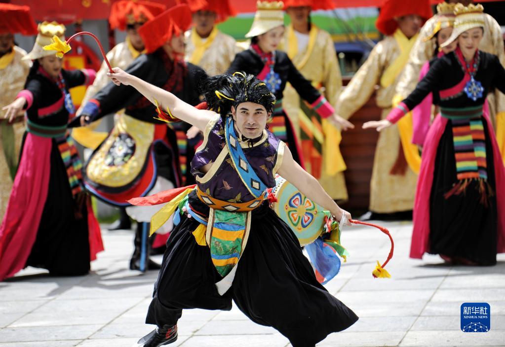 5月31日,演員在隆子縣玉麥鄉(xiang) 文化廣場表演歌舞劇《天邊格桑花》。新華社記者 張汝鋒 攝