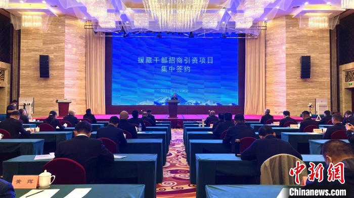 圖為(wei) 援藏幹部招商引資項目集中簽約線下現場。謝牧 攝