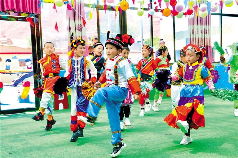 山南市瓊結縣下水村雙語幼兒(er) 園的孩子們(men) 在表演民族團結進步舞蹈《愛我中華》。通訊員 倫(lun) 珠澤仁 記者 次旺 攝