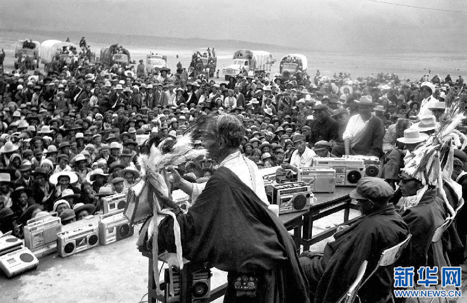 西藏那曲縣78歲的民間藝人阿達向觀眾(zhong) 說唱《格薩爾王傳(chuan) 》。新華社記者 馬競秋 攝(1986年1月15日發)